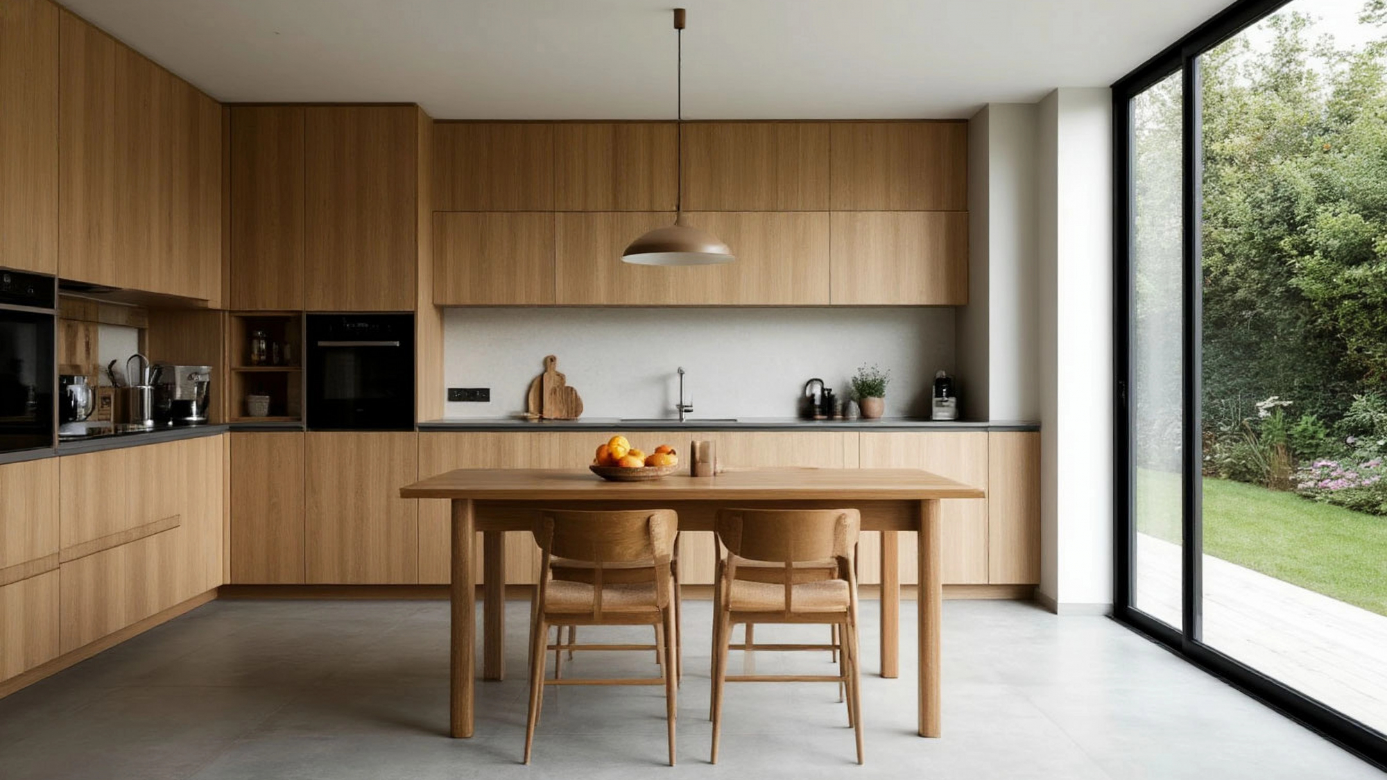 Стиль кухни подчёркивается не только визуальными качествами, но и тактильными ощущениями. Материалы фасадов и столешниц приятны на ощупь, их поверхность мягко отражает свет и при этом остаётся практичной и устойчивой к повреждениям. Современные системы хранения, продуманные шкафы и оптимальная организация рабочего пространства создают чувство порядка и свободы, характерное для минималистических интерьеров, но при этом кухня остаётся тёплой и гостеприимной.