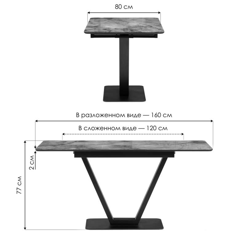 Длина стола в разложенном виде: 160 см.