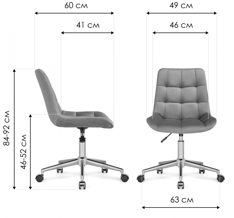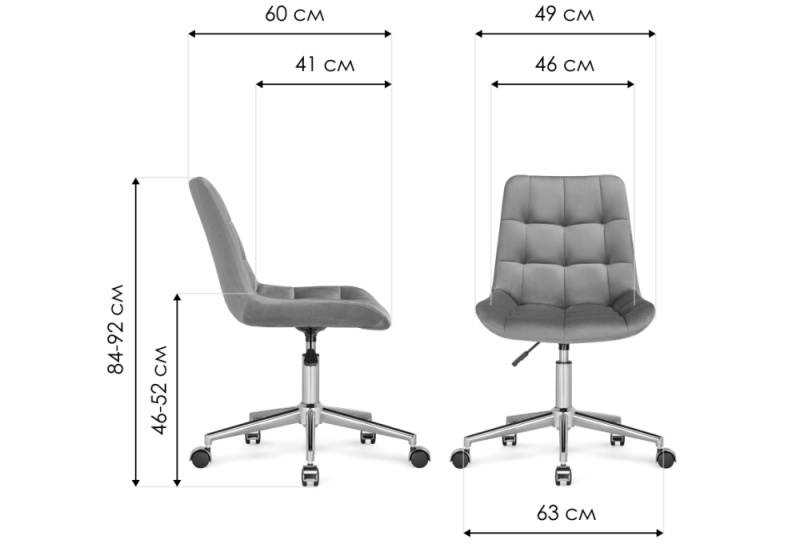 Диаметр крестовины: 63 см. Высота спинки: 38 см.