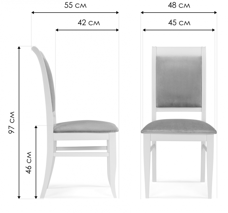 Стул деревянный Авелин серый велюр / белый (48x55x97).